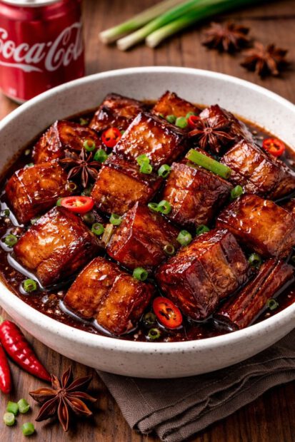 Du willst also die Cola-Version von “Red Braised Pork”, weil Zucker und Sojasauce allein nicht aufregend genug sind – jetzt muss auch noch eine koffeinierte Brause aus den 80ern mit rein.